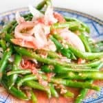 Pour the dressing over the cooked green beans. Season again with salt and pepper if needed.