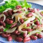 Three bean salad is a favorite American salad. This salad just features one of those beans, the kidney bean. Dressed up with warm spices, fresh herbs, and a caramelized onion, this is inspired from a Georgian recipe by William Pokhlebkin, a Soviet food writer.